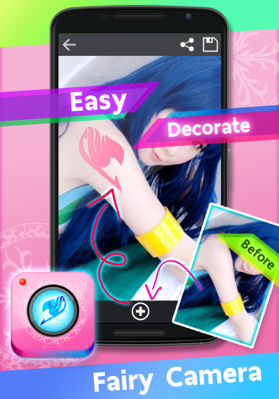 Fairy Camera is an amazing apps your can stamp your favorite guild symbol from anime fairy tail on your photo. If you're a love of decorate anime photo , you'll be carried away by the symbol we prepared for you.