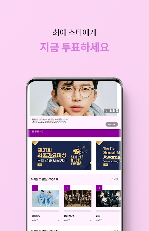 1) İdol grupları: Yerli idol yıldız gruplarını destekleyin ve oy verin.