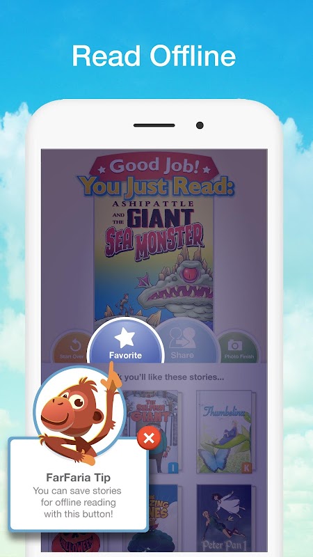 FarFaria, çocuklarınızın okuma sevgisi geliştirmelerine yardımcı olur. Popüler eğitici kitaplardan oluşan kitaplığımız 1-9 yaş arası çocuklar için derlenmiştir ve Rapunzel ve Oz Büyücüsü gibi klasiklerin yanı sıra yeni hitleri de içerir. Kitaplar, çocukların kendi başlarına DAHA FAZLA okumalarını sağlamak için Standartlarla uyumlu okuma seviyelerine sahiptir ve kişiselleştirilmiş bir okuma deneyimi için vurgulanan metinle birlikte okuma seçeneği içerir.