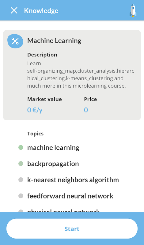 - Start building your knowledge base. There are many free topics available. You can buy coins to open nanodegrees which cover groups of closely related knowledges with their core topics.