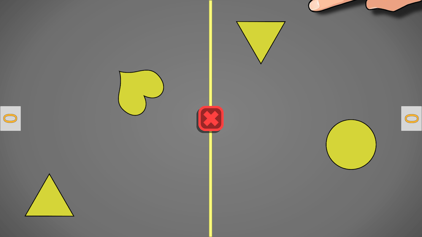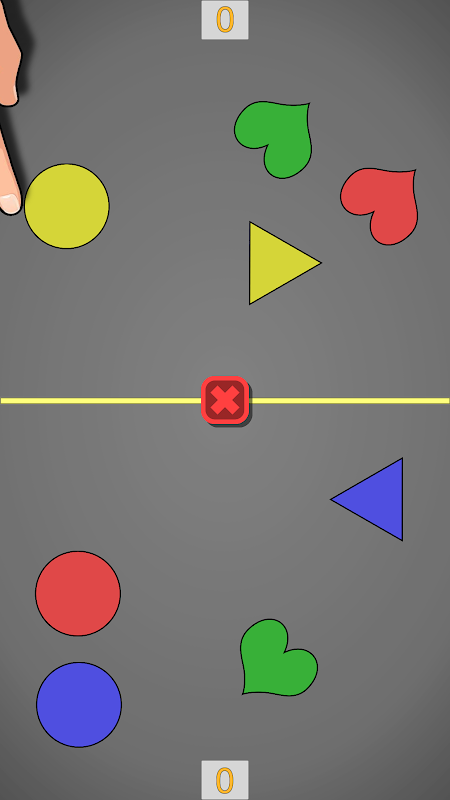 There are different game pieces on the board but only two pieces are the same. Be the first to touch such a piece with your finger on your part of the board and get a prize point but remember that if you choose the wrong piece, you will lose one point.