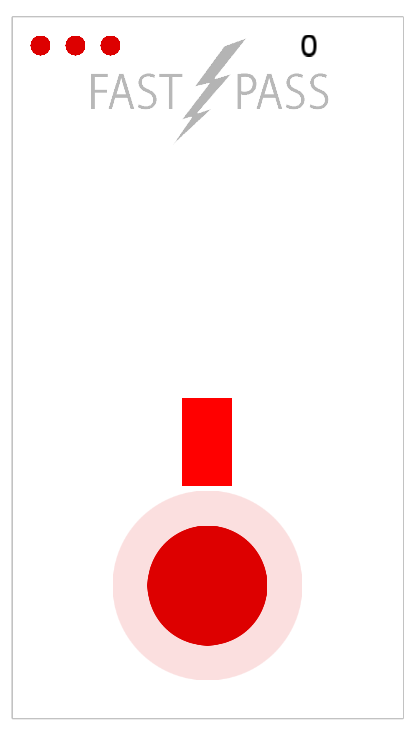 Battle your friends in an epic game of Fast Pass, where you gamble your time against your opponent, BUT BE CAREFUL not to let it be your turn when the time runs out. You will have a random time between 10 and 30 seconds before the round ends, so pace yourself, and tap wisely. The longer you wait to tap, the more points you earn. Also, the later in the round it is, the more points you can get. If it is your turn when the time runs out, YOU LOSE. This means you will lose all the points you got that round, but the other player gets to keep all theirs. The first player whose total meter reaches the End Line WINS!