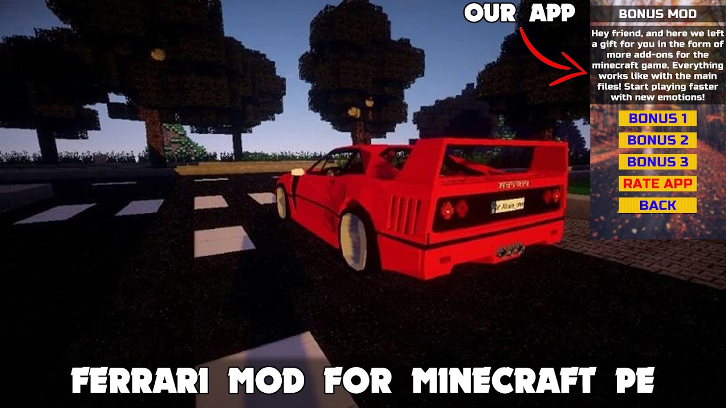 Minecraft için Ferrari Mod bu, MCPE için bir eklenti ve mod başlatıcısıdır