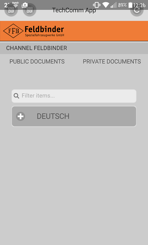 Die FFB-Dokumentations-App stellt einen interaktiven Zugang zu den aktuellen Betriebsanleitungen für Feldbinder-Silofahrzeuge in mehreren Sprachen bereit. Die Informationen zur sicheren Bedienung beim Beladen und Entladen, zur Wartung oder Reinigung werden anschaulich und in responsivem HTML5 für Tabletts und Smartphones dargestellt.. Der Anwender kann die Dokumente alternativ online lesen oder für die Offline-Nutzung auf das Gerät herunterladen. Der Anwender wird dann über Updates von Dokumenten informiert.