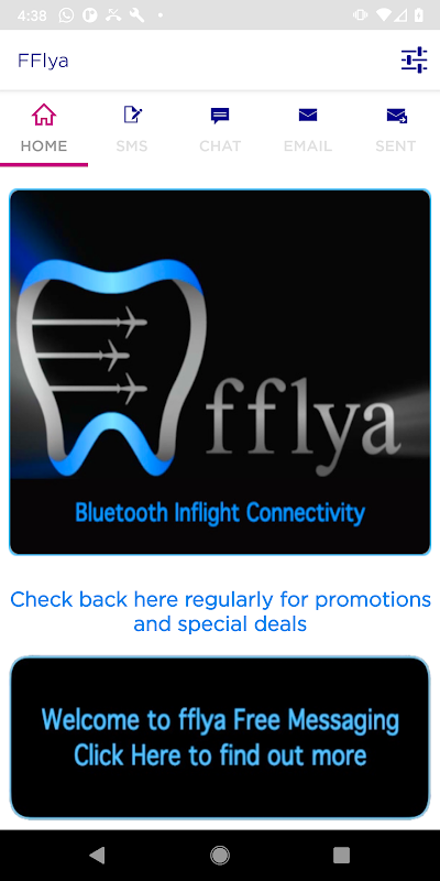 fflya, bağlantıyı optimize eden ve veri boyutunu azaltan bir Havayolu mesajlaşma ürünüdür, daha fazla kullanıcıyla çalışmak üzere tasarlanmış özelliklere sahiptir. Bu sürüm, yalnızca E-posta ve SMS gönderme ve alma özelliğine sahiptir ve artık uçuş sırasında EROS üzerinden kupon alma özelliği ile birlikte.