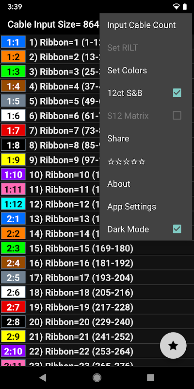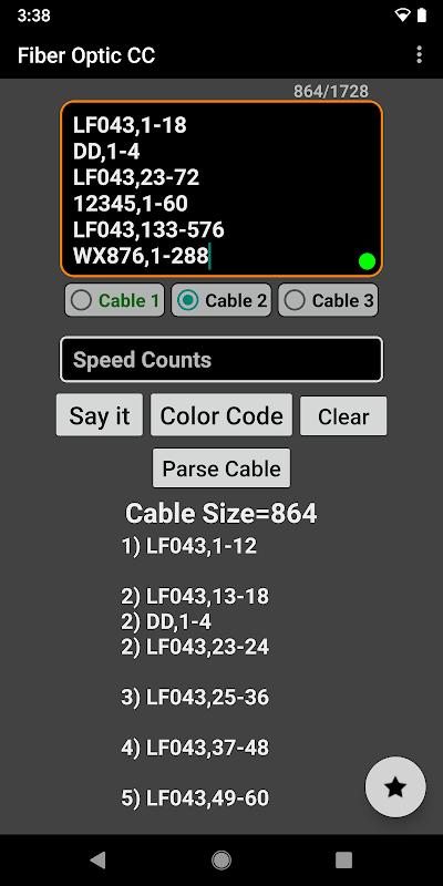Uygulamada kullanmak gerekli olmasa da. Sayım Girişi ekranında istediğiniz grup boyutuna ayrılabilen tam karmaşık kablo sayısını girebilirsiniz. Ardından, özel kablo sayınızın kullanımı kolay genişleyen fiber grafiğe yerleştirilmesi için 'Renk Kodu' düğmesini seçebilirsiniz. Gevşek bir tüp veya şerit kabloları bulabileceğiniz fiber optik renk kodu, kılıf sayısı ve 3456F boyutuna kadar fiber optik kablolar üzerinde kendi özel girdiğiniz karmaşık kablo sayımınız.