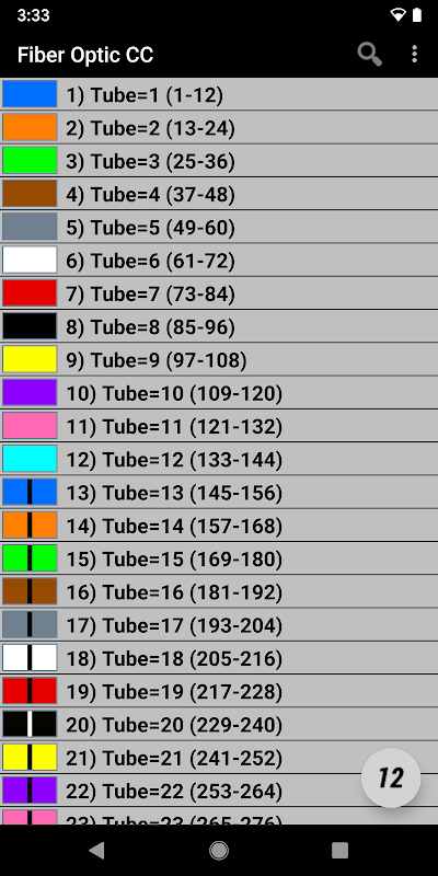 Fiber optik renk kodu, Loose Tube kablo tiplerinde Ribbon dahil olmak üzere Loose Tube ve Ribbon fiber optik kabloların renk kodunu çeviren aranabilir bir genişletme grafiğidir. Kablo sayısını, ters kablo sayısını, özel başlangıç lifini, düz kılıf sayısını arayın veya tek bir ekrandan genişleyen bir lif şeması ile ters renk koduyla arayın.