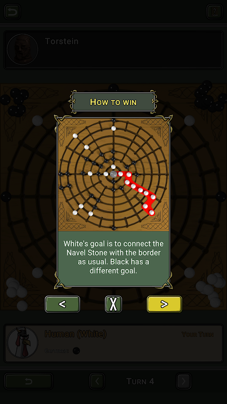 Uygulama, oyunun iki çeşidini sunuyor: anlaşılması daha kolay olan ve her iki oyuncunun da eşit muamele gördüğü temel sürüm ve her iki oyuncu için farklı hedeflere sahip olan gelişmiş sürüm. Genel amaç, taşlardan oluşan bağlı bir çizgi oluşturarak merkezi Deniz taşını tahtanın sınırına bağlamaktır.