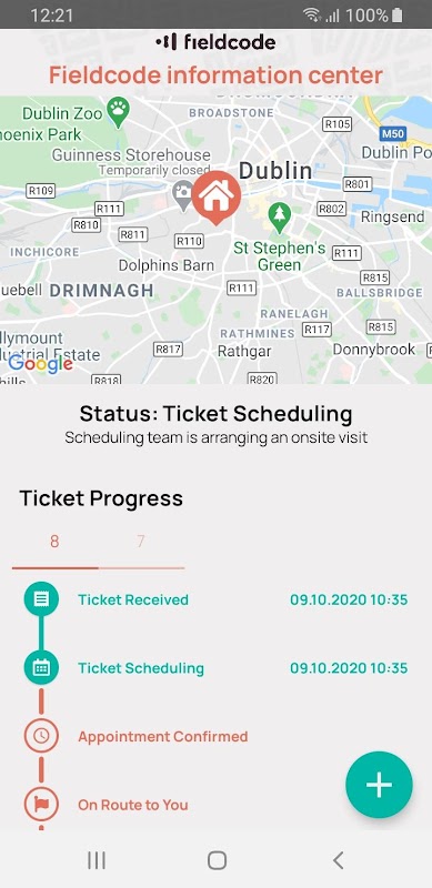The Fieldcode information center app enables you to keep track of the service delivery progress. Within the app you can monitor the status of your event and access detailed information on its resolution progress. You can access the details of a specific event on the app in two ways: either by clicking on the token received via email or by filling in the token number on the dedicated field within the app.
