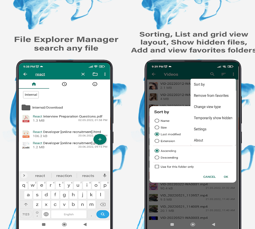 File Explorer Manager is used to access internal and SD card content files You can easily rename, copy, move, delete, search and share anything you wish and you can Sorting, List and grid view layout, Show hidden files, Add and view favorites folders and theme and layout customization and App security using pin, password, and fingerprints, you can also compress and decompress files. It Contains no unnecessary permissions which give you more privacy and security than other apps.