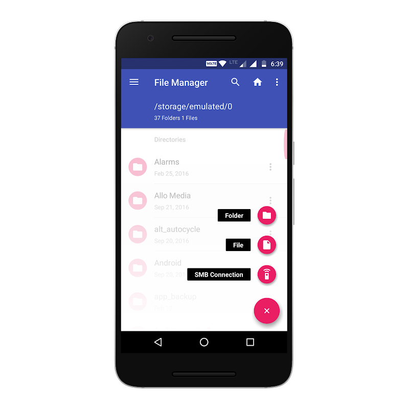 File Manager is a complete file manager that allows you to handle any file (Images, Music, Movies, Documents, app) manager for both local and networked use on your Android device via a clean and intuitive and based on Material Design guidelines interface.