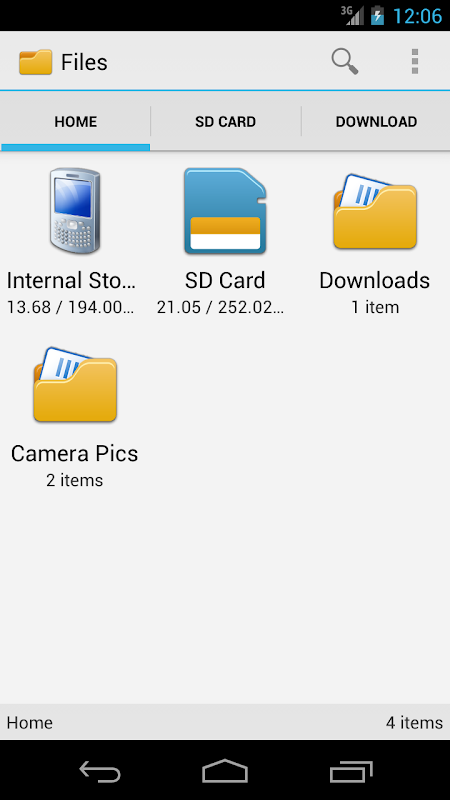 Files is a simple file manager / explorer app. You can browse all of your internal phone / tablet memory and your SD cards.
