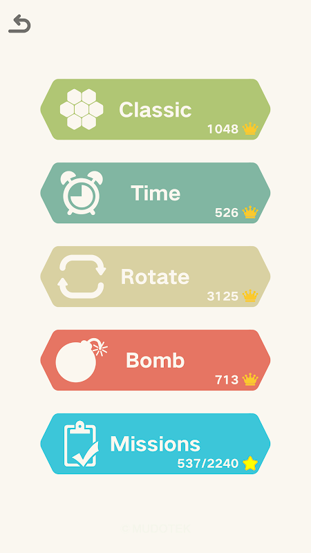 5. Each mode has five sub modes: Classic, Time, Rotate, Bomb and Missions.