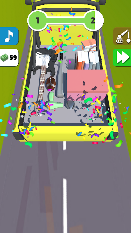 Fill The Trunk is an addictive hyper-casual puzzle game. Can you organize your trunk by using different objects, guitars, electronic devices, books, balls, and many more items? It's time to try, fill the trunk and send it!