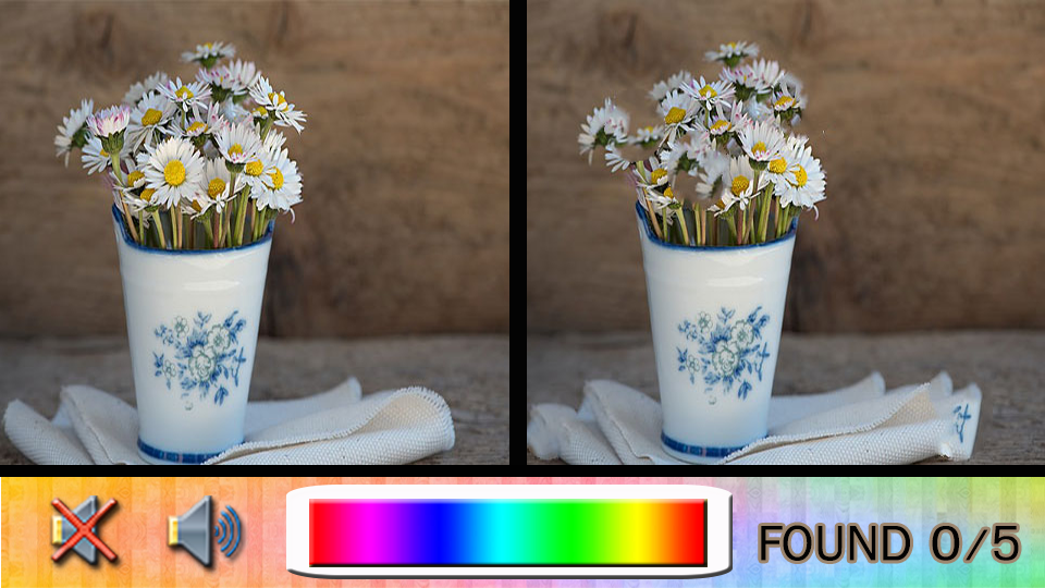 Welcome to Find Difference vase you will compete with time to spot 5 differences between 2 photos. This vase is designed to play in a short period of time. Traveling on train? Sitting on bus? Standing in wait queue? Why don't you get your smartphone out of pocket and start find the difference blocks.