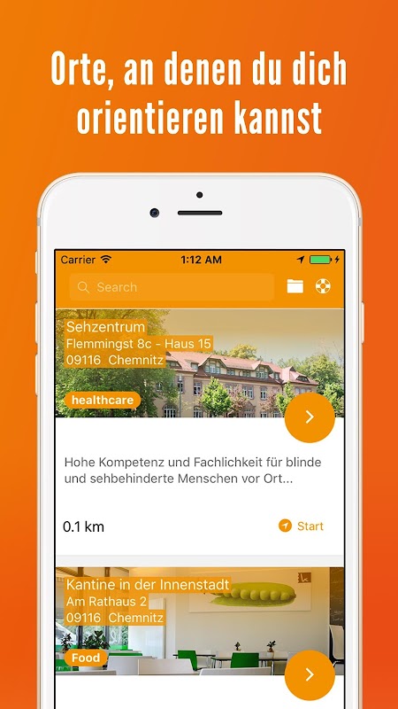 Die App stellt eine direkte Verbindung zwischen Menschen und Gebäuden her, bautechnische Barrieren können dadurch abgebaut werden. Die mobile Anwendung funktioniert in ihrer öffentlichen Umgebung in Rückkopplung mit einem passiven Bluetooth-Sender, der an bestimmten Orten eines Gebäudes angebracht wird. Die elektronische Orientierungshilfe lässt sich einfach und wartungsarm auf andere IT-Systeme übertragen.