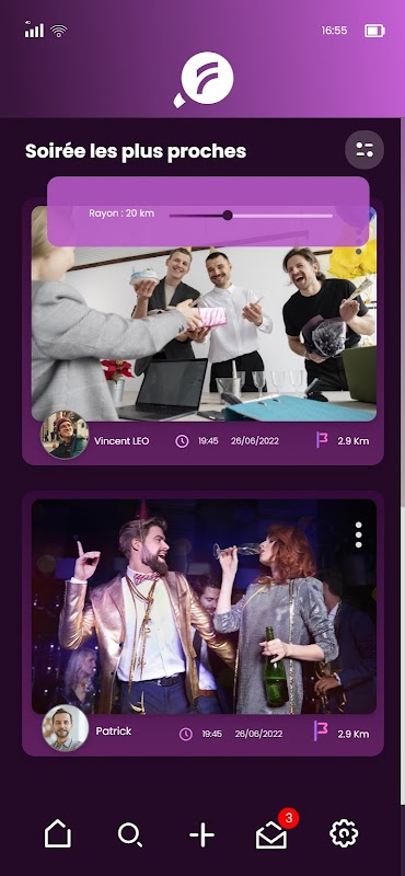 FINDERZ uygulaması, kullanıcıların bir akşam önermesine veya başka bir kullanıcı tarafından oluşturulmuş bir akşama katılmasına olanak tanır.