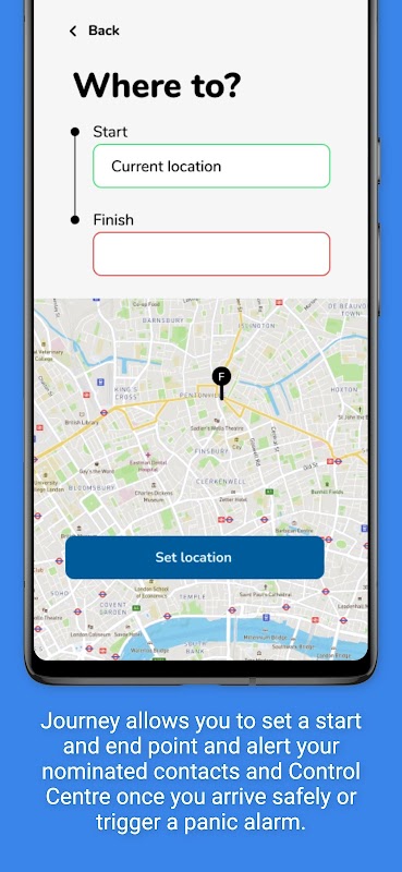 Uygulamayı açtığınız andan itibaren konumunuzu takip edebiliyoruz; bu, alarm etkinleştirildiğinde hareketlerinizin geriye doğru izlenebileceği anlamına geliyor. Bu, müdahale ekiplerimizin size mümkün olan en hızlı şekilde ulaşmasını sağlar.