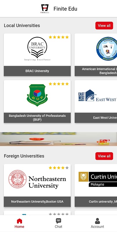 • Öğrenciler, Finite Edu Uygulamasında kayıtlı üniversiteler hakkında kolayca bilgi bulabilir
