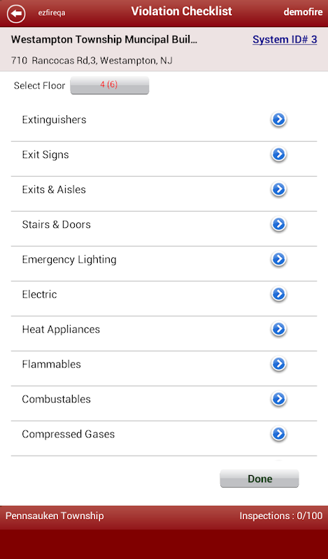 ihlalleri de dahil olmak üzere Muayene sonuçları, EZFire Kayıtları Muayene güncellemek ve hemen modülleri İzinleri (veya Wi-Fi kısa sürede eşitler veya hücresel bağlantı yeniden kuruldu). planlanmamış bir müfettiş istasyonuna dönmek zorunda kalmadan alanında mülkiyet kaydı indirebilirsiniz gerektiğinde.