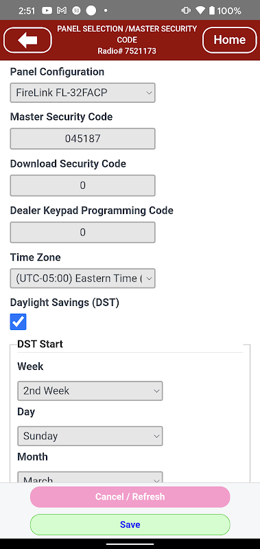 Uygulama, NAPCO FireLink ticari yangın alarm panelinin programlanmasına izin verir.