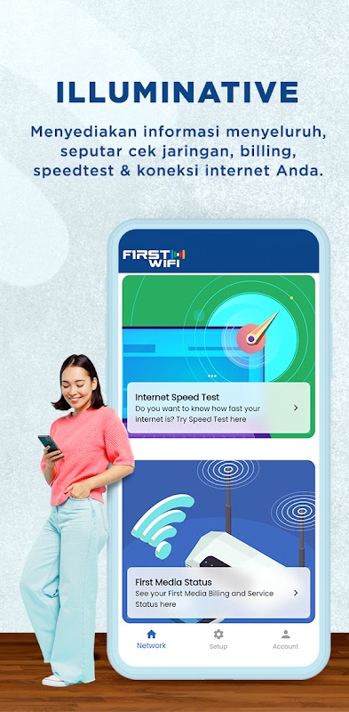 First Wifi, First Media müşterileri için özel olarak tasarlanmış bir ağ cihazı yönetimi uygulamasıdır. Artık evinizdeki ağ cihazlarını yönetmekte sorun yaşamanıza gerek yok. First Wifi uygulamasıyla, evinizdeki ağ cihazlarını her zaman ve her yerde doğrudan akıllı telefonunuz aracılığıyla kolayca ve esnek bir şekilde yönetebilirsiniz.