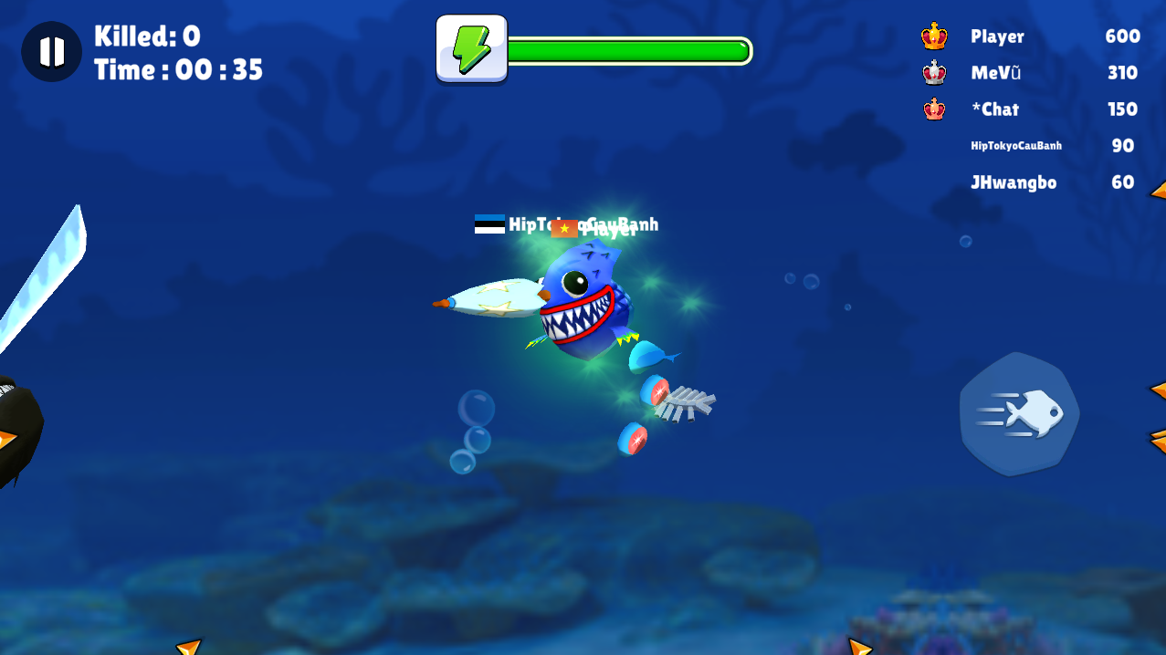 Diğer balıkları öldürüp yiyerek balık kralı olun.