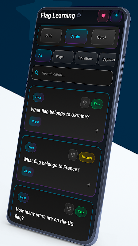 FlagMotion: Bayraklar, coğrafya, tarih ve daha fazlası hakkında bilgi kartları ve sınavlar.