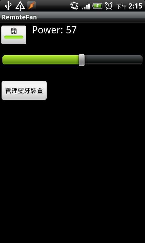 本 App 會透過藍牙連線 FLAG-1605A 實驗板, 然後可以用按鈕開關實驗板上的風扇, 並且用滑條遙控風扇的強弱。