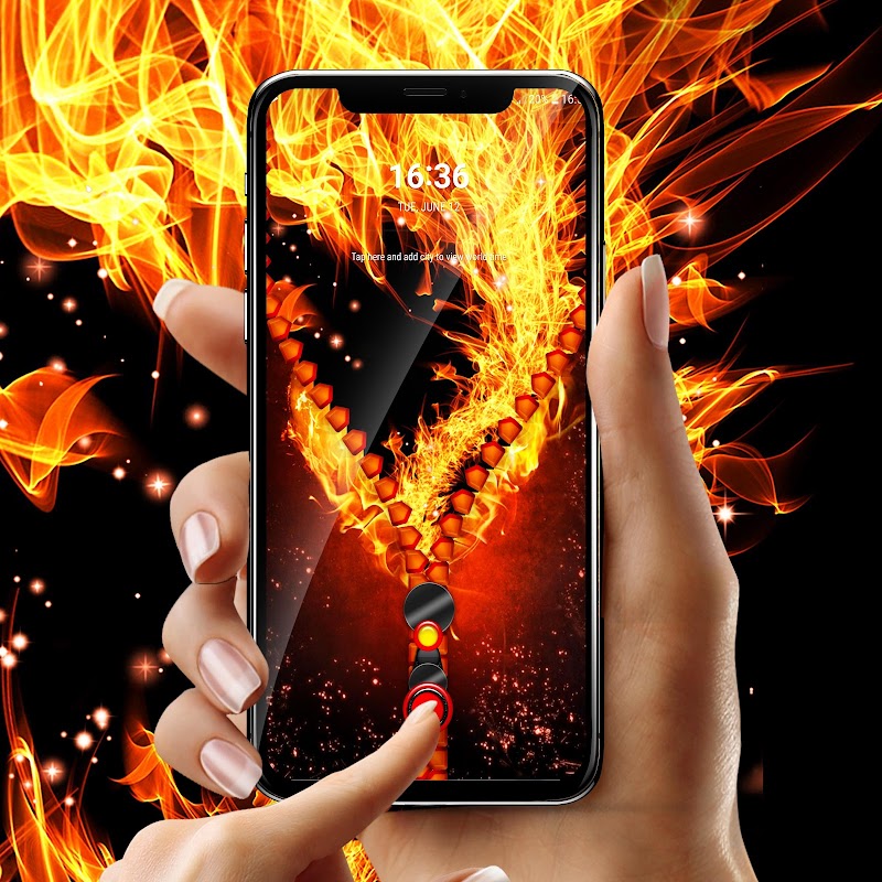 Yangın ve en son ve en sıcak fermuar gelen alevler ile telefon kilidini.