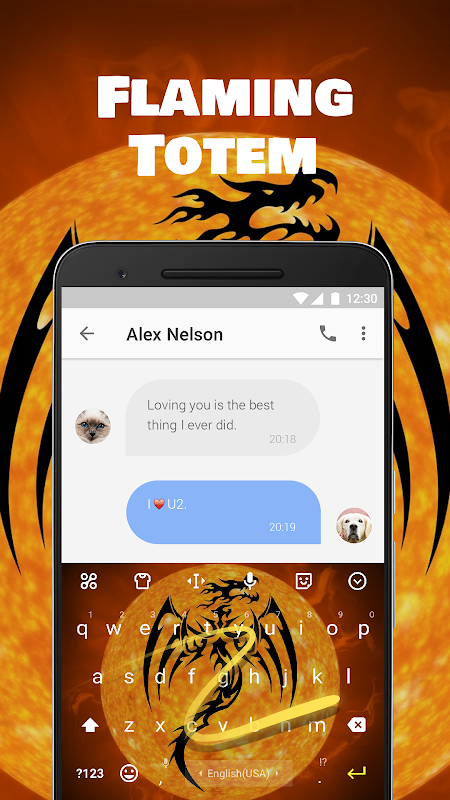 Decorate your keyboard with Flaming Totem Emoji Keyboard Theme. It offers wonderful typing experience and personalized enjoyment!