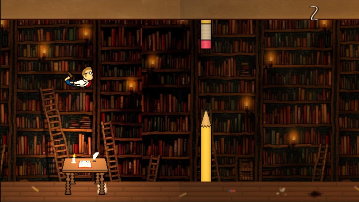Flappy Nerd'deki hedefiniz, engeller dizisi boyunca bir flappy geek'e öncülük etmektir ve bu karanlık kütüphanede yapabileceğiniz en yüksek skoru daha da zorlaştırır.