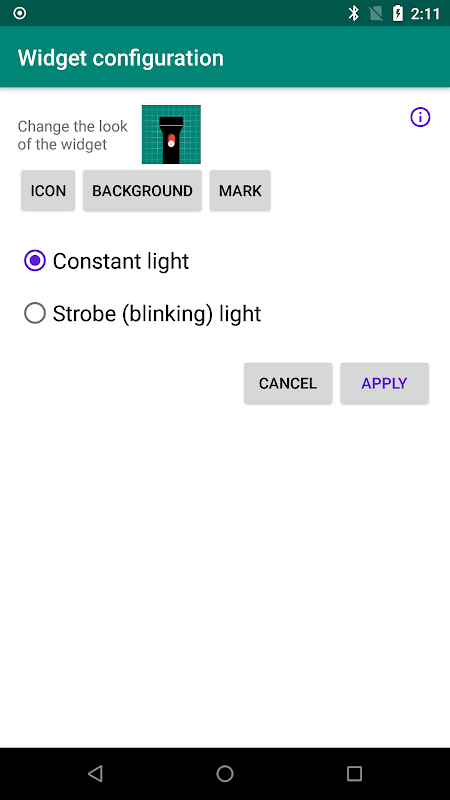 Widget'lar ve stroboskopik (yanıp sönen) etkisi ile basit FlashLight uygulaması.