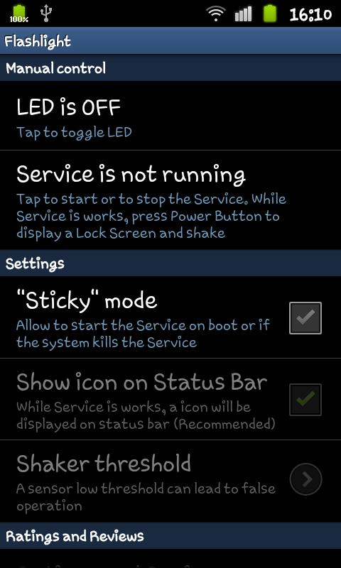 - Turn on a flashlight by shaking the phone. Press the power button to activate the lock screen, and some times actively shake your phone. Use this method to quickly turn on the flashlight without having to unlock the phone. For this method service must be running. If the service is running, the notification area will display the application icon. Run the Service and use Accelerometer does not the battery consumption, as The service does not perform any expensive operations, and accelerometer is triggered only if screen lock is active.