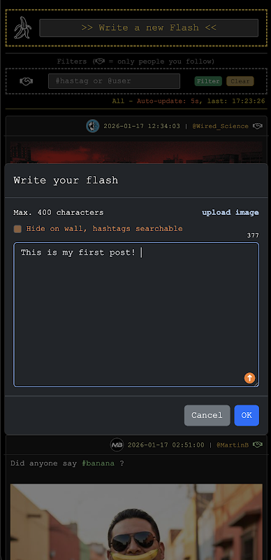 FlashTube, yeni, ücretsiz, gizlilik odaklı, minimalist bir mikroblog platformudur. Temel özelliklere sahip bir Twitter/X alternatifi.