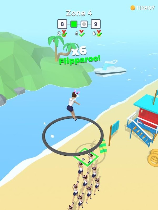 A physics based flipping and stacking game where you have to flip as much as possible before reaching the cheerleader tower.