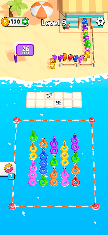 "Floaty Mania", renkli çöp adamları aynı renkli şamandıralarla eşleştirerek tahtayı temizlediğiniz bir bulmaca oyunudur.