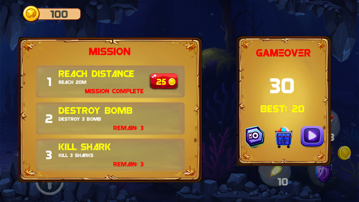 Denizaltınızı kontrol etmek, tehlikeli engellerden kaçınmak ve mümkün olduğunca derine dalmak için dokunun.