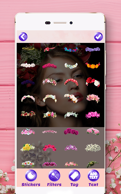 Flower Crown Photo Editor, bir saniyede mükemmel fotoğrafınıza eklemek için çiçek taç çıkartmaları ekleyen yeni bir uygulamadır. Flower Crown kataloğumuzu seçin ve çeşitli Flower Crown desen tasarımları arasından seçiminizi yapın.Flower Crown Photo Editor, sunan bir fotoğraf düzenleme uygulamasıdır. fotoğraflarınıza eklemek ve bir saniye içinde saçınıza sanal bir görünüm kazandırmak için çeşitli "fotoğraf çıkartmaları".