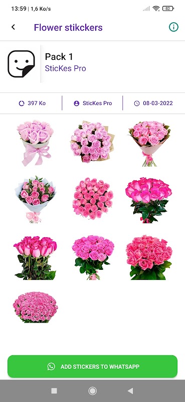 This app is supported in the official version of Whatsapp, so make sure to update your app to the latest version to use the flowers sticker.