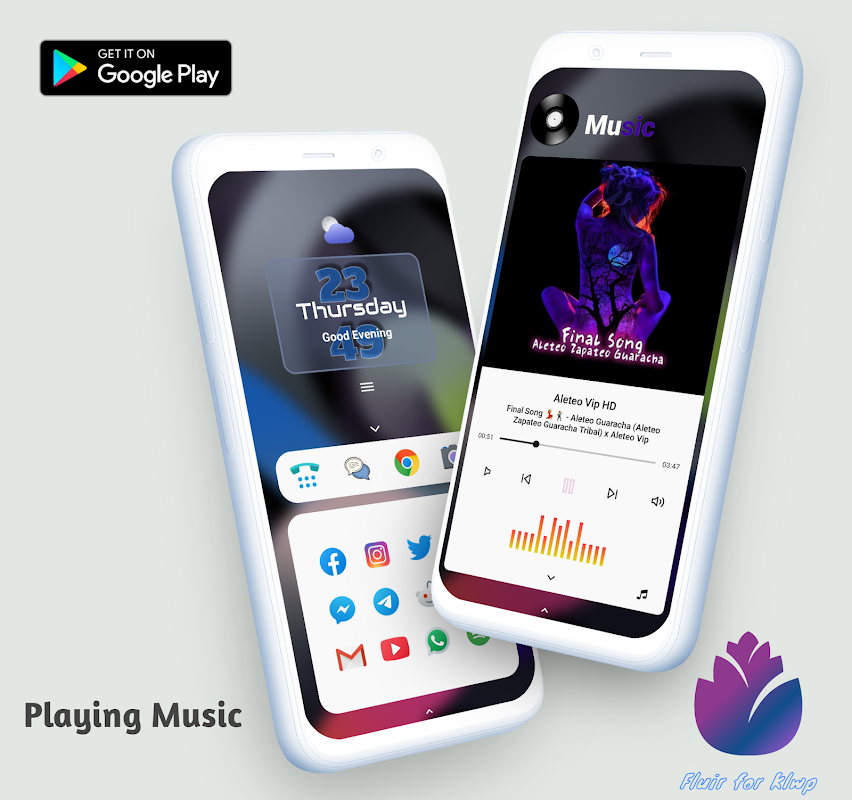 Flow for Klwp teması, tüm ekran en boy oranlarını destekler.