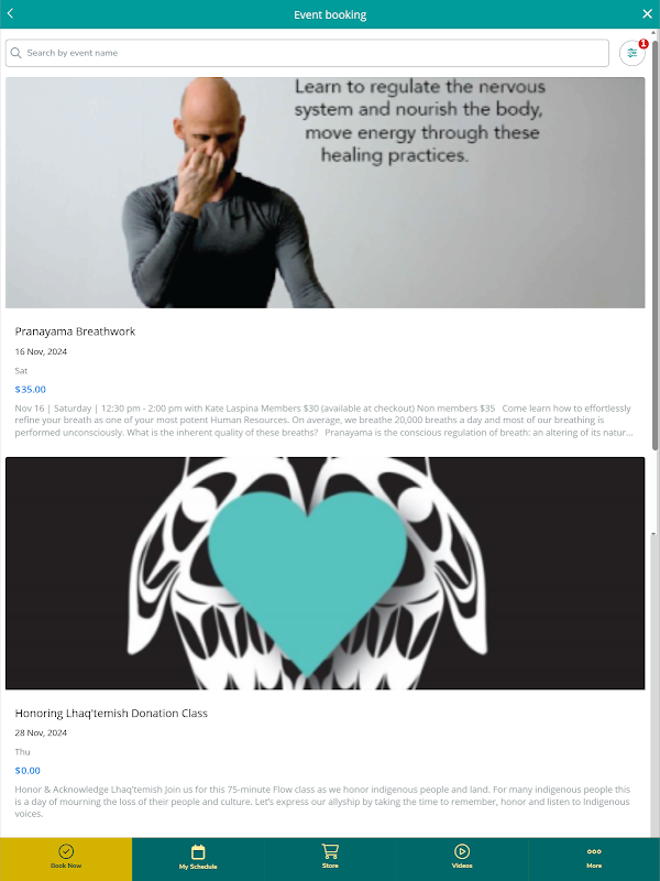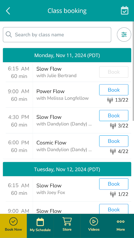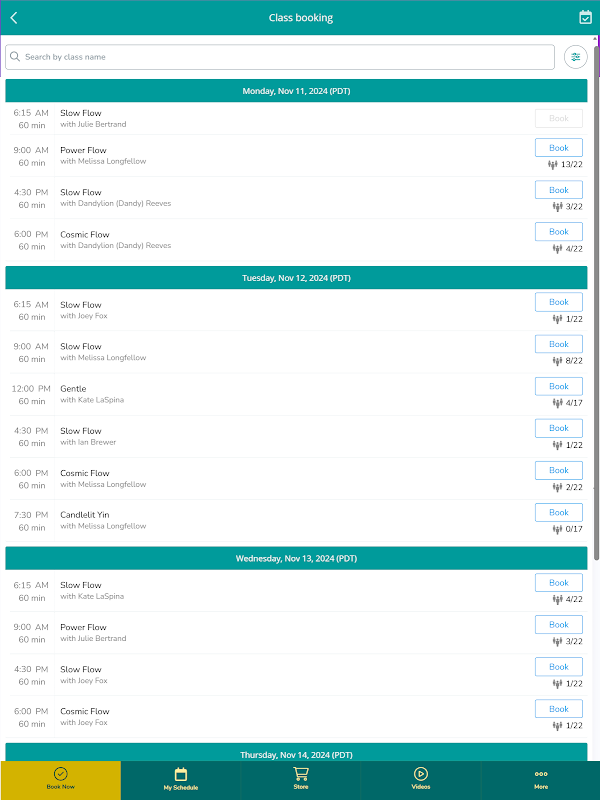 Flux Power Yoga'da programları görüntülemek ve oturumları rezerve etmek için uygulamayı indirin