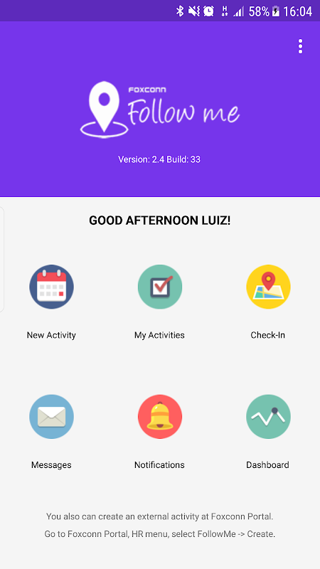 Bu uygulama şirketten onların dış etkinliklerini bilgilendirmek amacıyla Yöneticileri ve Foxconn Brezilya ait Supervisors yöneliktir.
