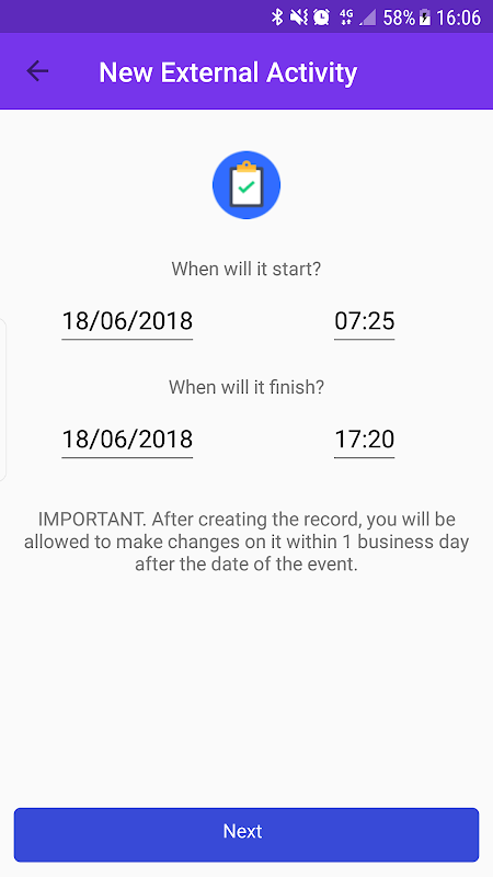 Harici aktiviteyi bilgilendirmek için EKLE butonuna dokunun.