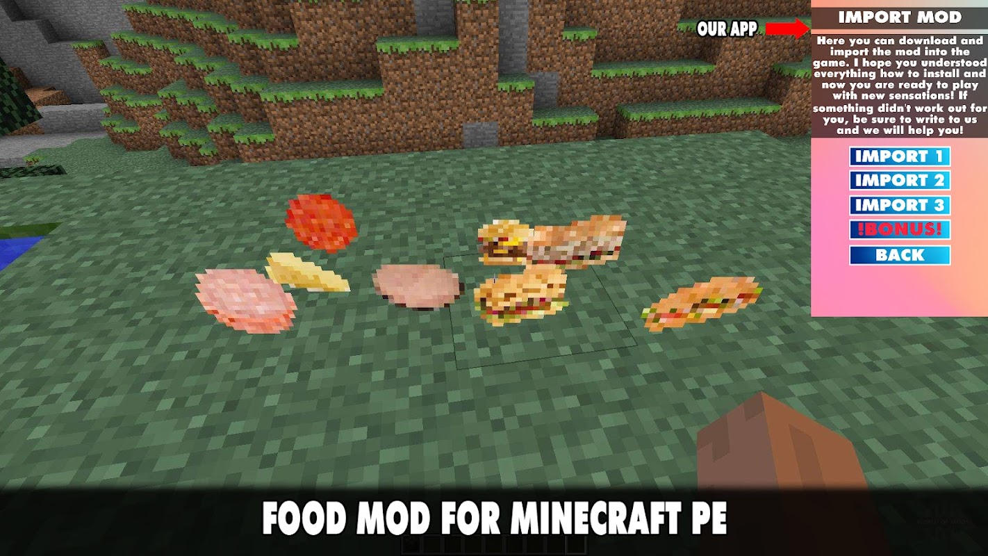 😀🤣If you are tired of the regular version of Minecraft and want to diversify the gameplay, you can install one of our modifications. This is what we talked about above. But this will not be an ordinary addition that adds fabulous animals, new locations or props, but a unique mods. You can download the always updated Food Mod for Minecraft Pocket Edition 2022!🤣😀