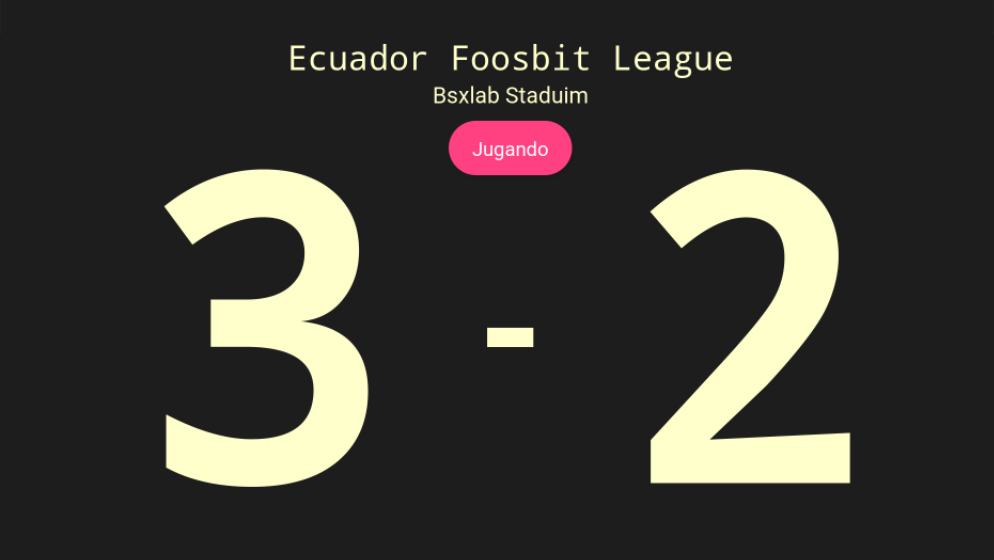 La aplicación muestra el marcador de juego de un Futbolín. Es necesario que el futbolín (accesorio adicional indispensable) y el dispositivo, estén previamente sincronizados para su funcionamiento adecuado.