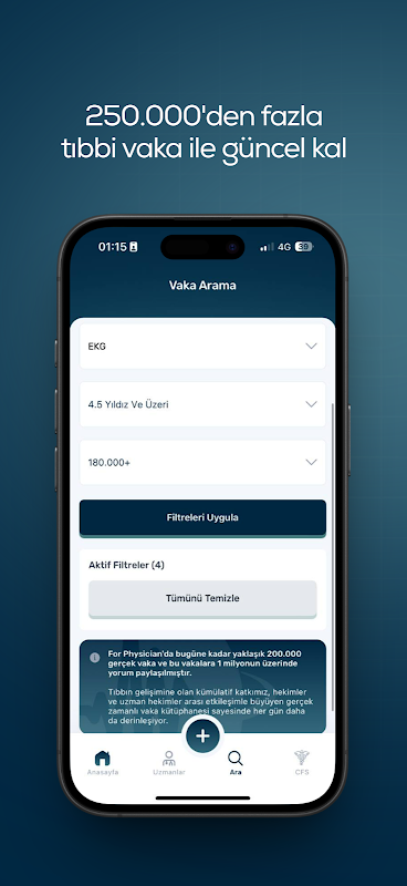 Yüz binden fazla güncel vaka ile sürekli büyüyen, gerçek zamanlı tıbbi vaka koleksiyonuna katılmak için şimdi For Physician uygulamasına kayıt olun.