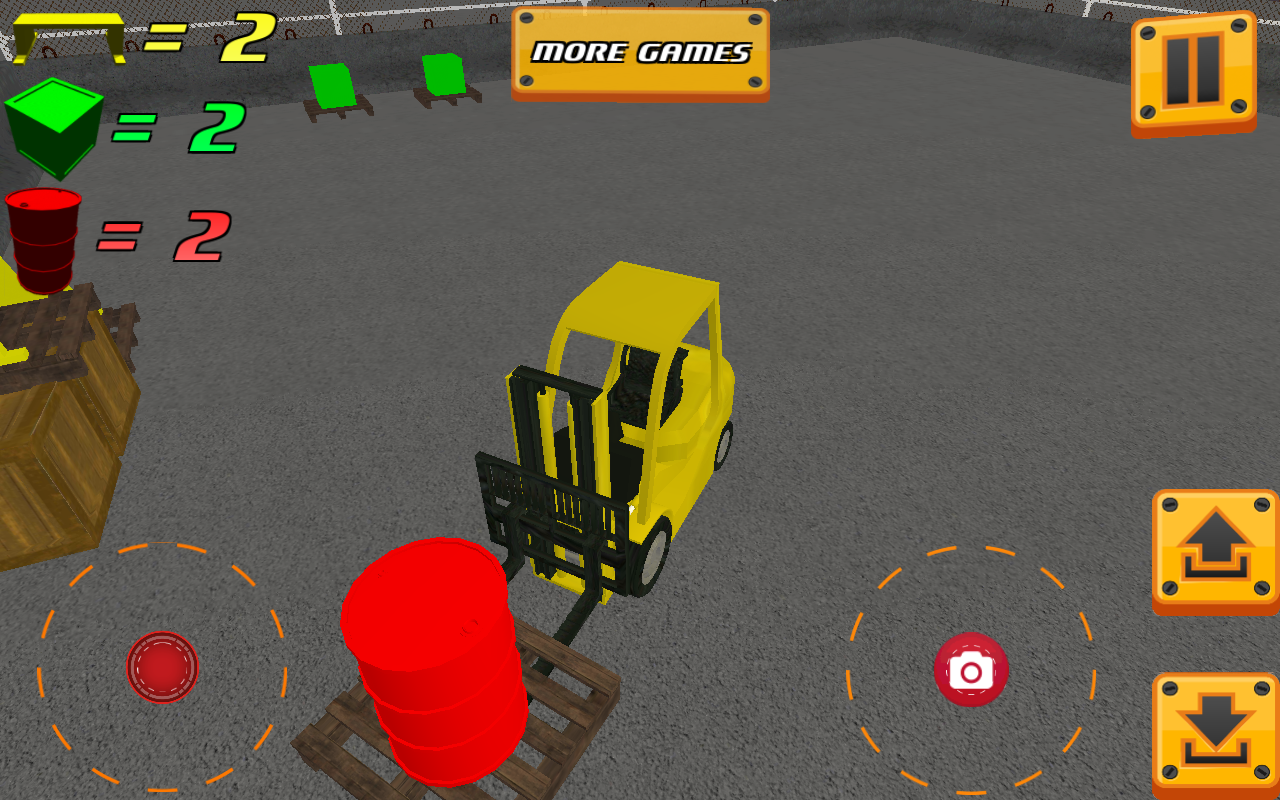 Well if you have ever wanted to work in a warehouse as a Forklift driver then here's your chance to get some practice. You need to drive to each package and pick it up my lowering the forklift arm and sliding it under. You can then lift up and proceed to delivery. You will see colored blocks, showing you where each one needs to go. Once they arrive you will see a delivered message. Allowing you to move onto the next.