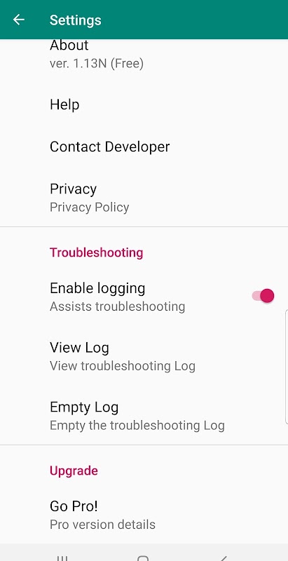Bildirimleri basitçe LOG (Pro sürümü) için bir ayar da vardır. Bu açıksa, TÜM bildirimler herhangi bir yönlendirme ayarlarından bağımsız olarak bir dosyaya kaydedilir.