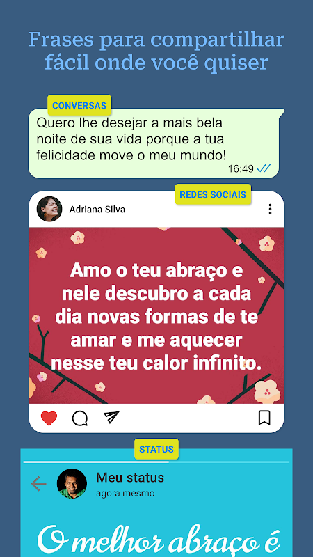 Piyasadaki en eski uygulamalardan biri olup binlerce güzel aşk ifadesi, günaydın, iyi günler, iyi geceler, motivasyon, statü, doğum günün kutlu olsun, yukarı çekme, bilgelik, yansıma, dostluk, dini, gibi binlerce güzel aşk ifadesi içeren eksiksiz bir kategori tabanına sahiptir. şarkılar, alıntılar ve daha fazlası.